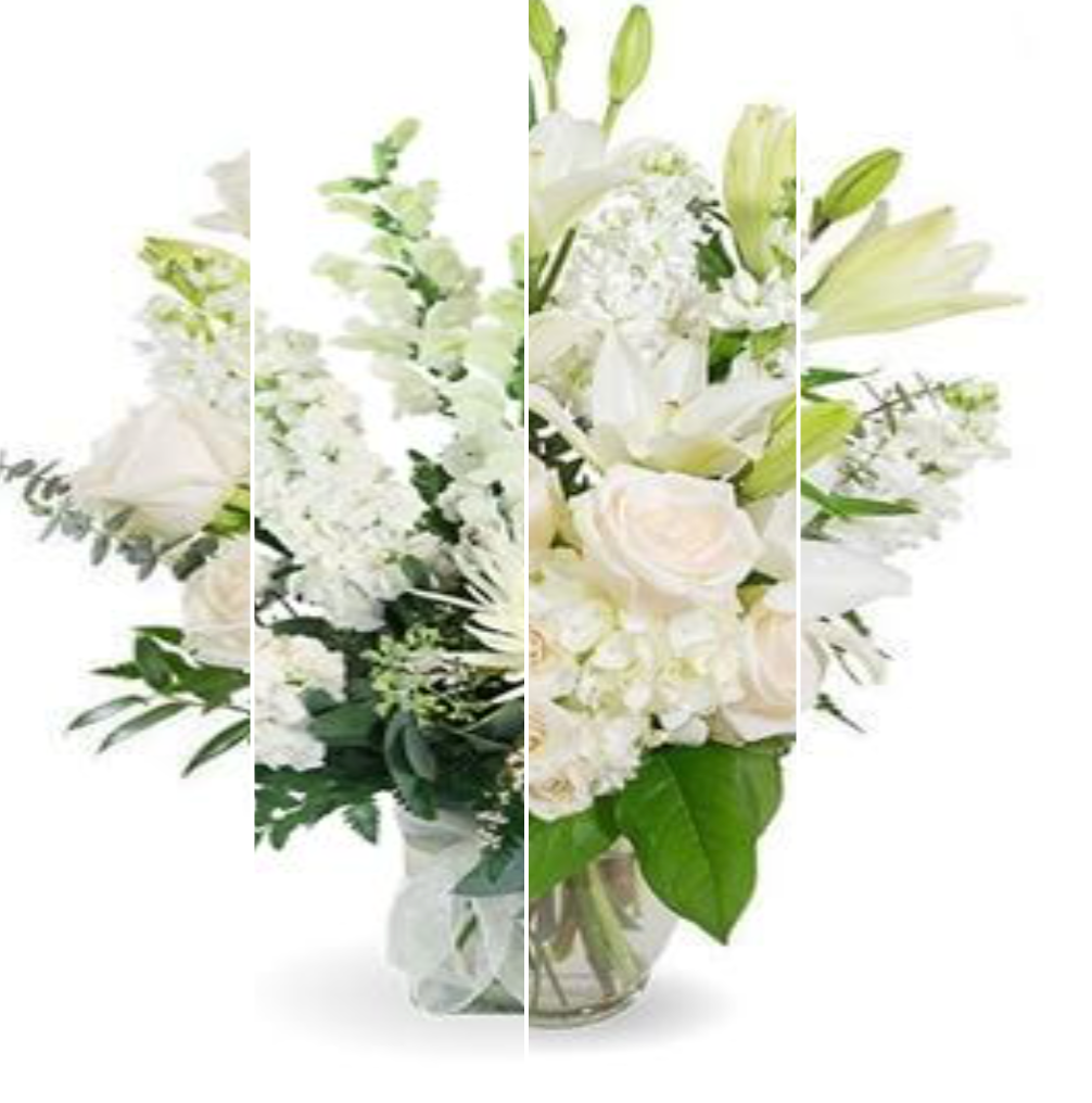 White designer’s choice bouquet was purchased for the family of Sharon Rose Heitkemper. Send Flowers